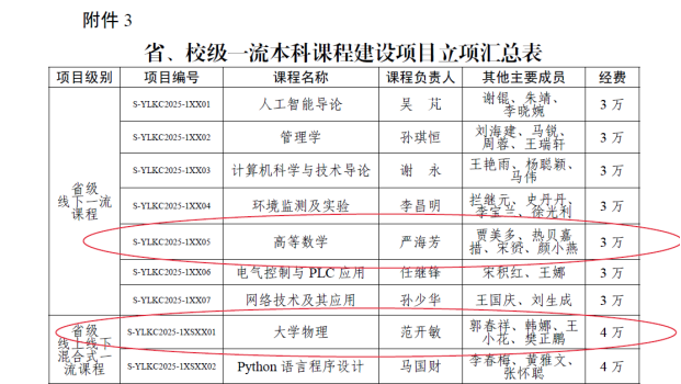 近日,学校发布《关于省、校级教育教学改革与建设项目立项建设的通知》校教务字〔2025〕15 号的文件,其中通识教育中心获批省级一流课程2门,《高等数学》获批为省级线下一流课程,《大学物理》获批为省级线上线下混合式一流课程;《大学英语》获批省级课程思政示范项目;获批省级骨干教师项目1项;获批校级“四新”研究与改革实践项目1项。