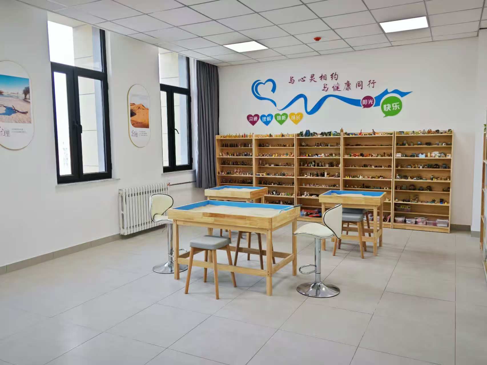学生心理发展指导中心目前开设有6间功能室,分别为预约接待室、个体咨询室、团辅活动室、情绪宣泄室、沙盘室、身心反馈训练室,为学生提供相应的心理咨询与服务。